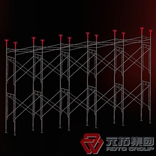 (4)安全可靠:連接棒和插銷的設(shè)計能使連接棒具有可靠的自鎖能力。作用于橫桿上的荷載通過彎管和斜拉桿均勻傳遞給立桿,所有立桿合理分擔(dān)荷載。同時配備有掛鉤踏板,門架爬梯,可調(diào)底座等桿配件,使用平安可靠。
